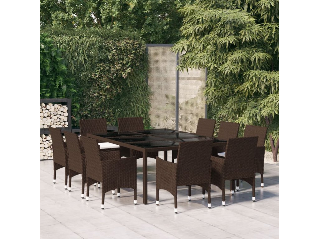 vidaXL 11-dielna záhradná jedálenská súprava polyratanová hnedá