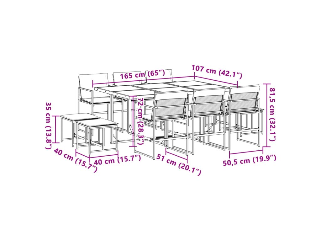 - Robustný a stabilný rám: Oceľový rám s práškovým nástrekom zaisťuje, že záhradný nábytok je pevný a stabilný pre každodenné vonkajšie použitie.