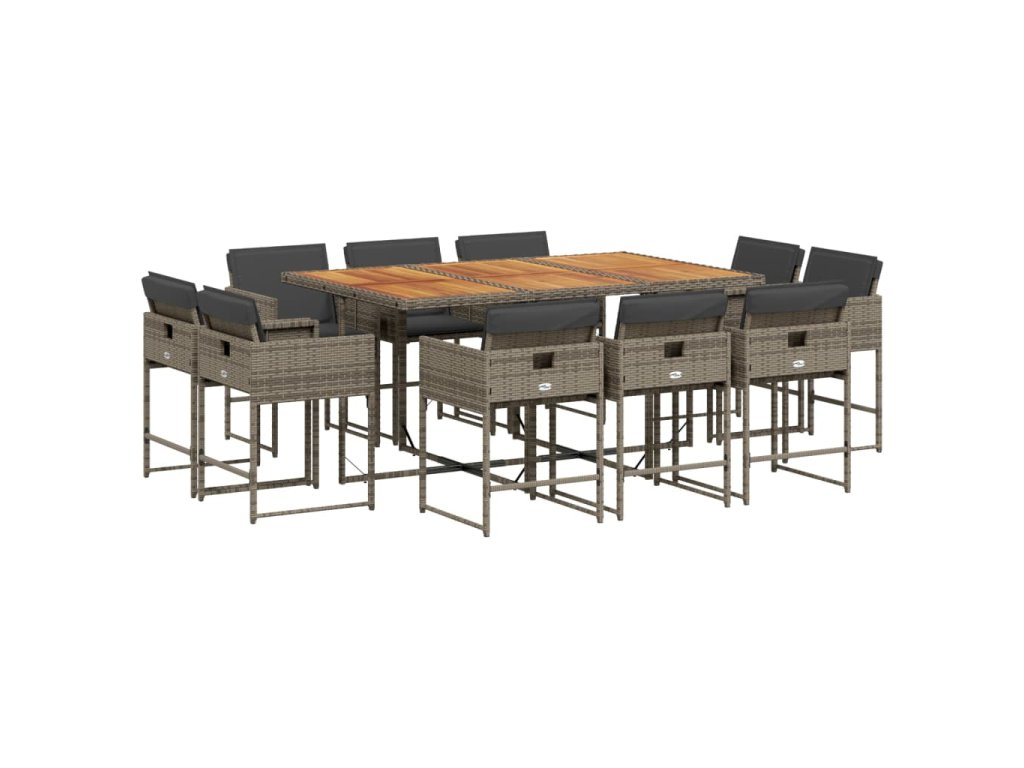 vidaXL 11-dielna záhradná jedálenská súprava s vankúšmi sivá polyratan