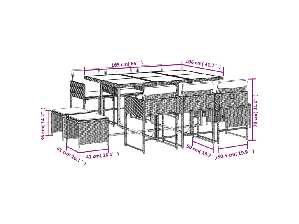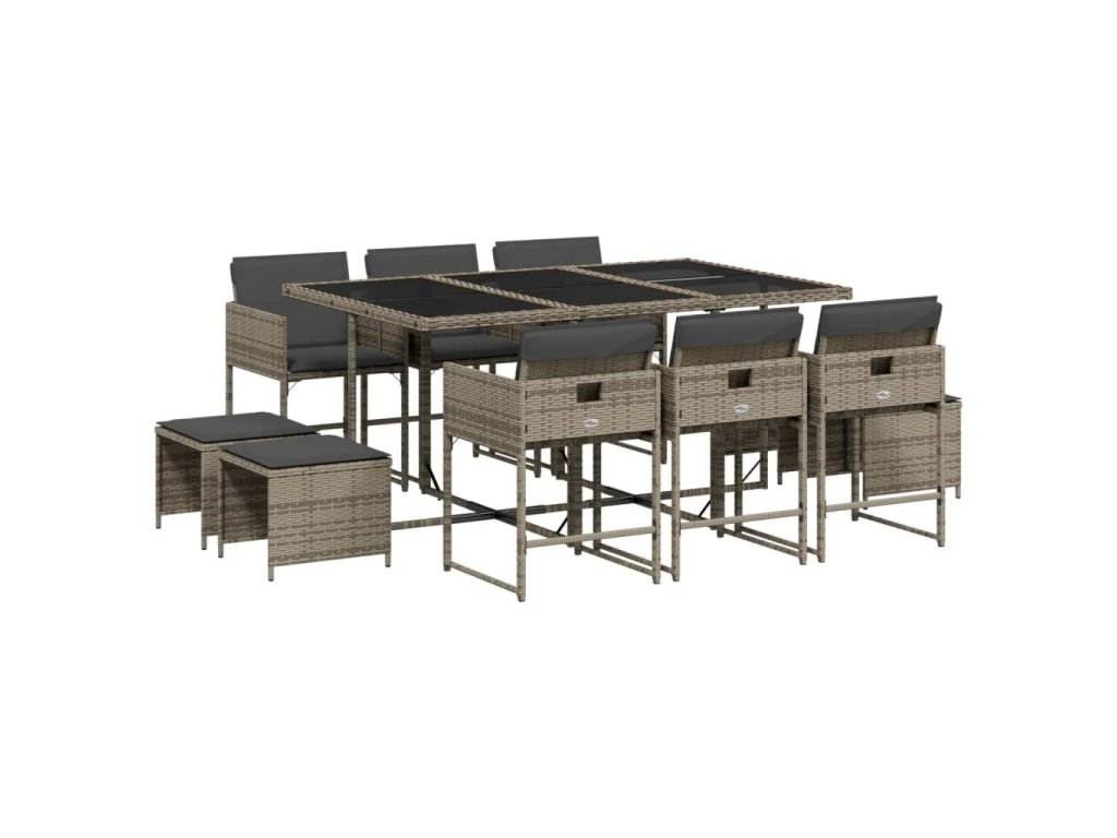 vidaXL 11-dielna záhradná jedálenská súprava s vankúšmi sivá polyratan