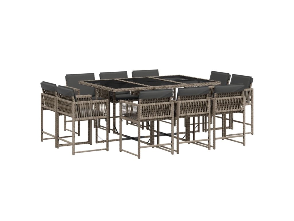 vidaXL 11-dielna záhradná jedálenská súprava s vankúšmi sivá polyratan