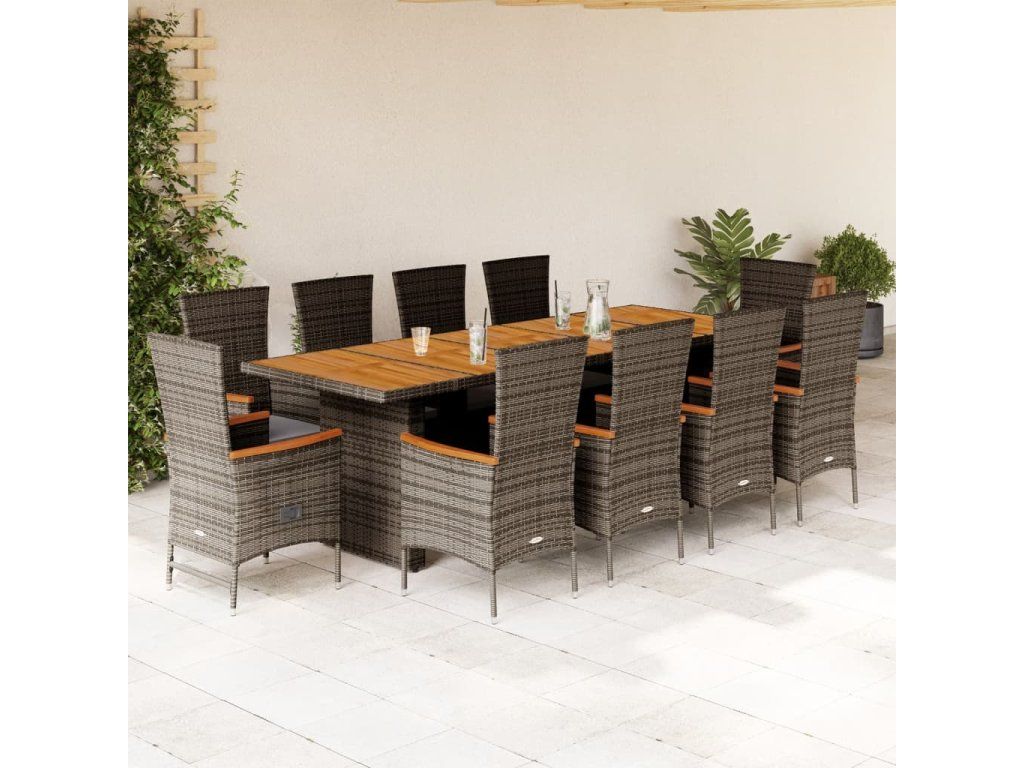 vidaXL 11-dielna záhradná jedálenská súprava s vankúšmi sivá polyratan