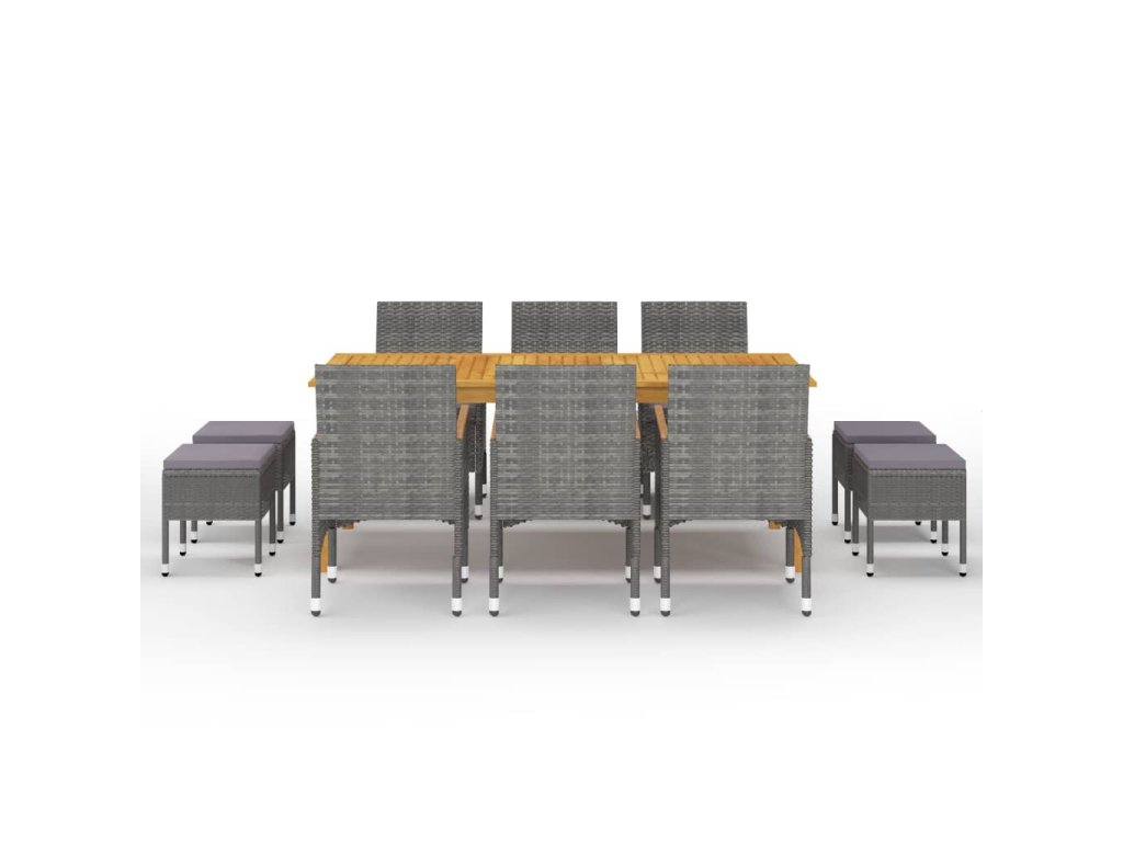 Jedálenský stôl je vyrobený z masívneho akáciového dreva s olejovou povrchovou úpravou, vďaka čomu je stabilný, odolný a ľahko sa udržiava. Vďaka oceľovému rámu s práškovou povrchovou úpravou potiahnutému ratanom PE odolným voči poveternostným vplyvom sú tieto jedálenské stoličky a kreslá stabilné a ľahko sa čistia. Vonkajšia stolička navrhnutá so zakriveným operadlom a podrúčkami má ergonomickejší tvar pre maximálne pohodlie počas sedenia. Podrúčky sú krásne zdobené masívnym akáciovým drevom, ktoré súprave dodáva rustikálny šarm. Každé sedadlo sa dodáva s odnímateľným husto polstrovaným vankúšom na zvýšenie pohodlia pri leňošení.