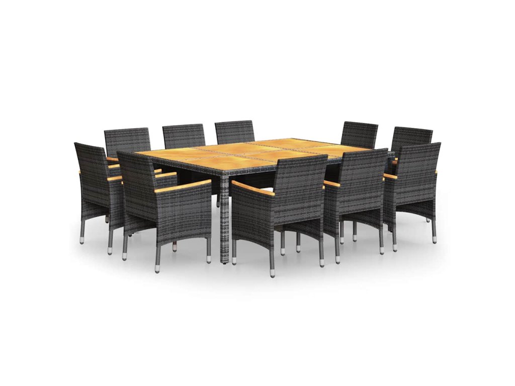 vidaXL 11-dielna záhradná jedálenská súprava sivá polyratanová
