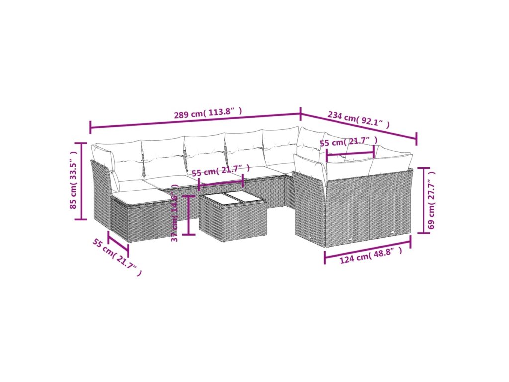 vidaXL 11-dielna záhradná jedálenská súprava vankúše béžová polyratan
