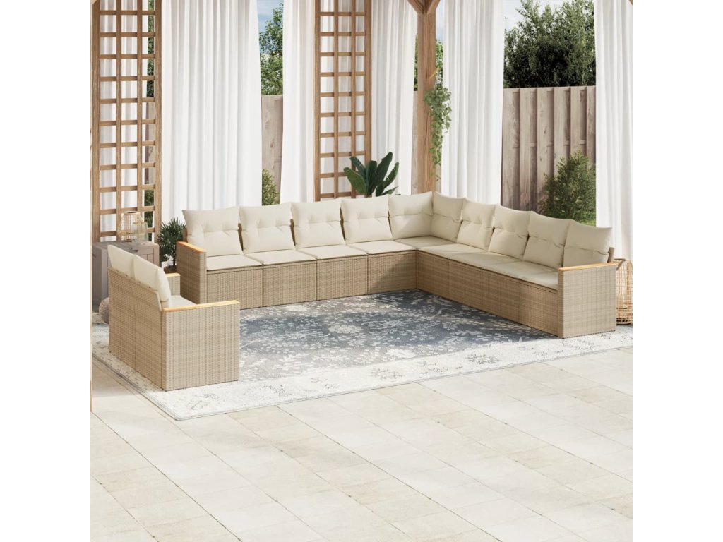 vidaXL 11-dielna záhradná jedálenská súprava vankúše béžová polyratan