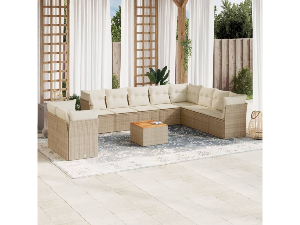 vidaXL 11-dielna záhradná jedálenská súprava vankúše béžová polyratan
