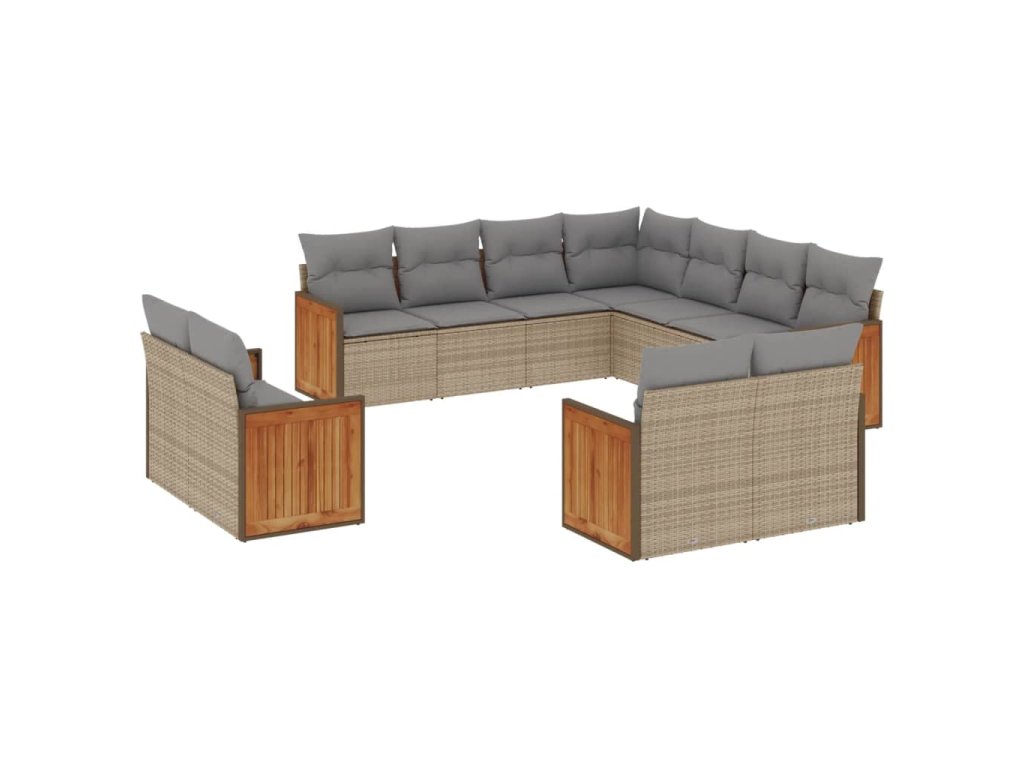 vidaXL 11-dielna záhradná jedálenská súprava vankúše béžová polyratan