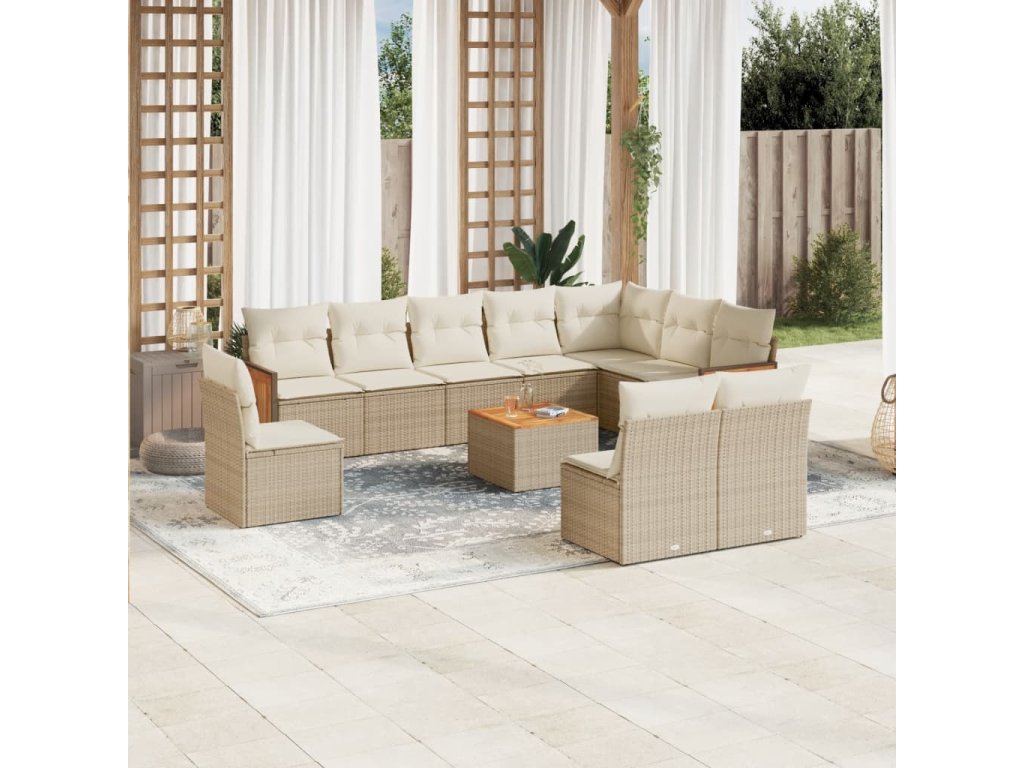 vidaXL 11-dielna záhradná jedálenská súprava vankúše béžová polyratan