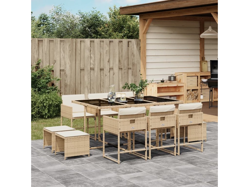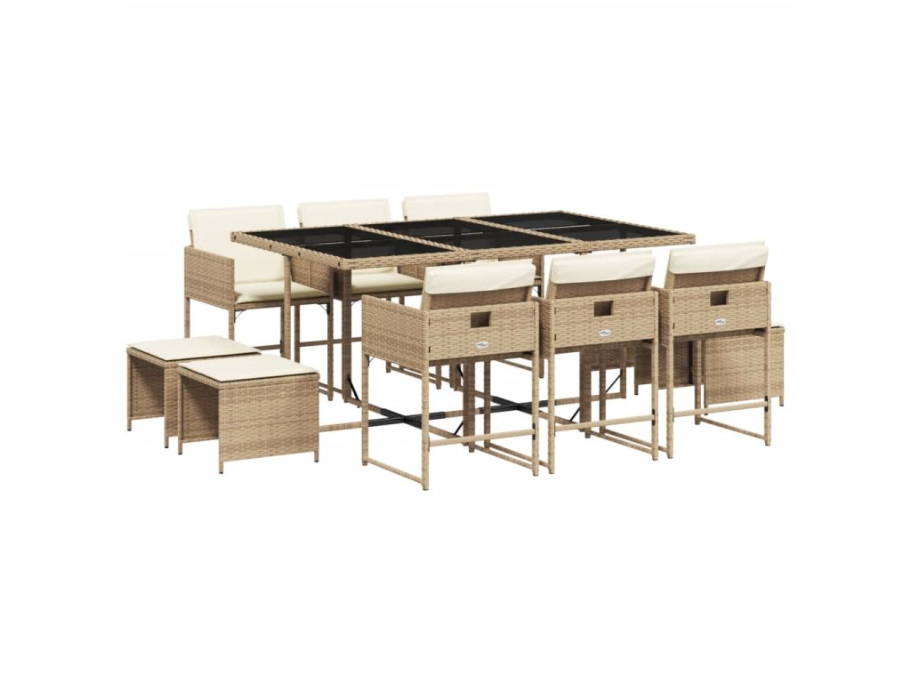 vidaXL 11-dielna záhradná jedálenská súprava vankúše béžová polyratan