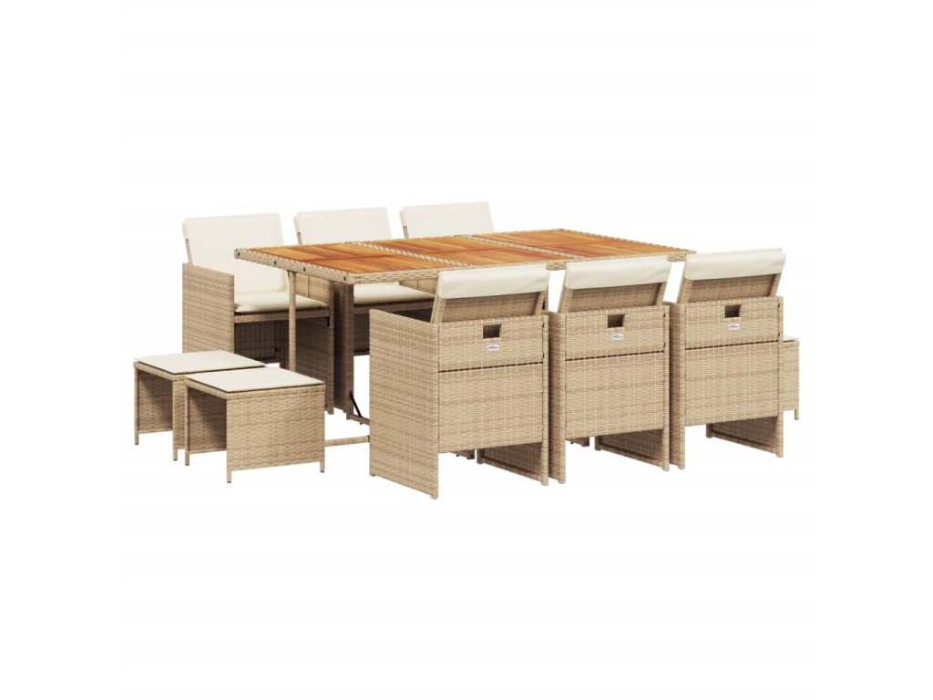 vidaXL 11-dielna záhradná jedálenská súprava vankúše béžová polyratan