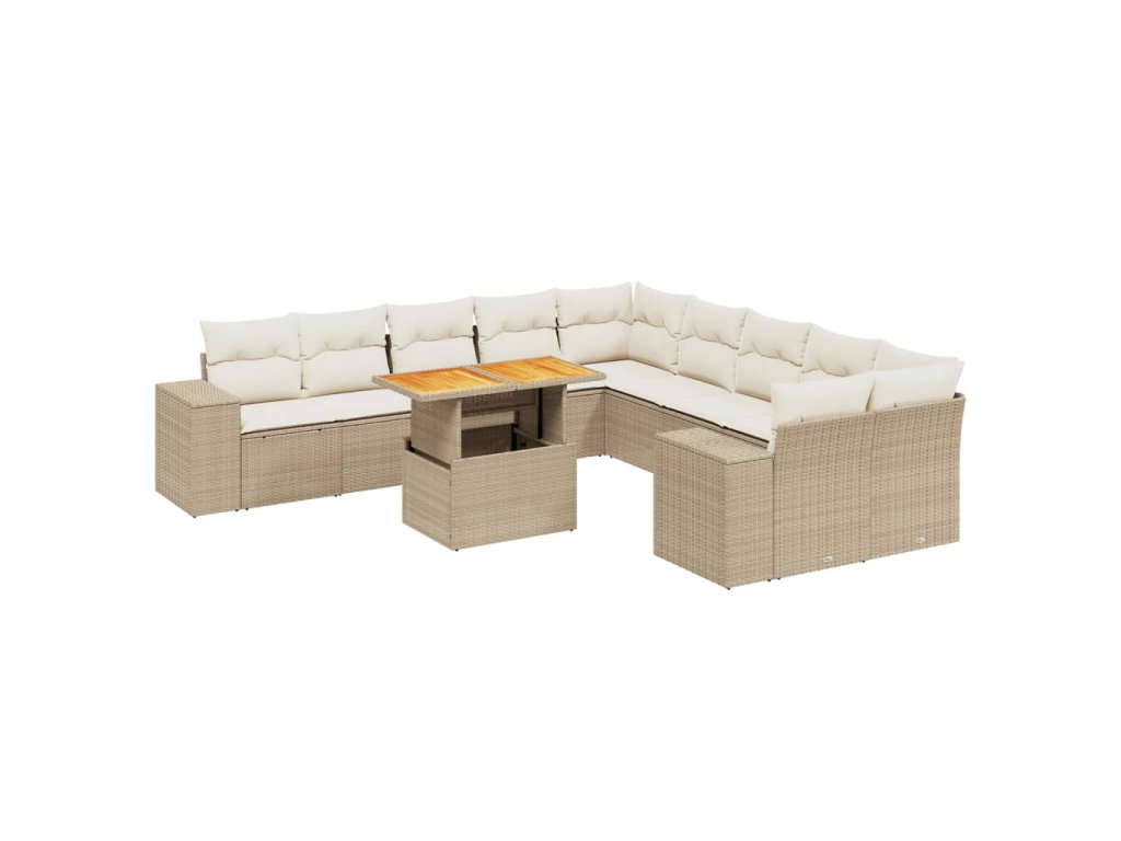 vidaXL 11-dielna záhradná jedálenská súprava vankúše béžová polyratan