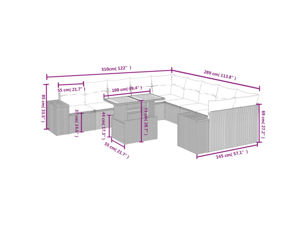 - Modulárny dizajn: Táto súprava vonkajšieho nábytku má modulárny dizajn, vďaka čomu je úplne flexibilná a ľahko sa premiestňuje, takže si môžete vytvoriť prispôsobené usporiadanie vonkajšieho nábytku.