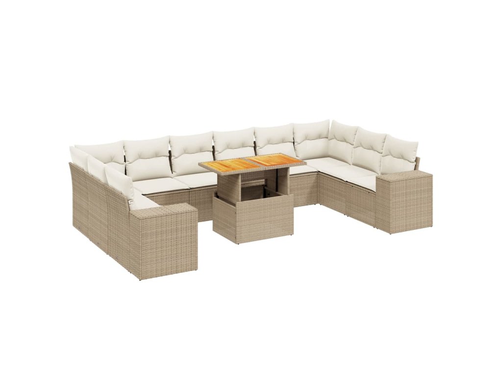 vidaXL 11-dielna záhradná jedálenská súprava vankúše béžová polyratan