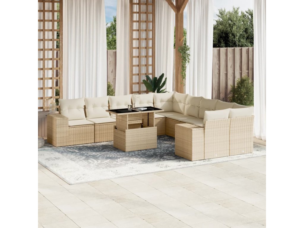 vidaXL 11-dielna záhradná jedálenská súprava vankúše béžová polyratan