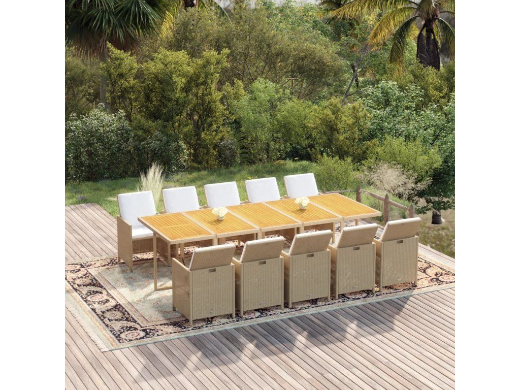 vidaXL 11-dielna záhradná jedálenská súprava vankúše polyratan béžová