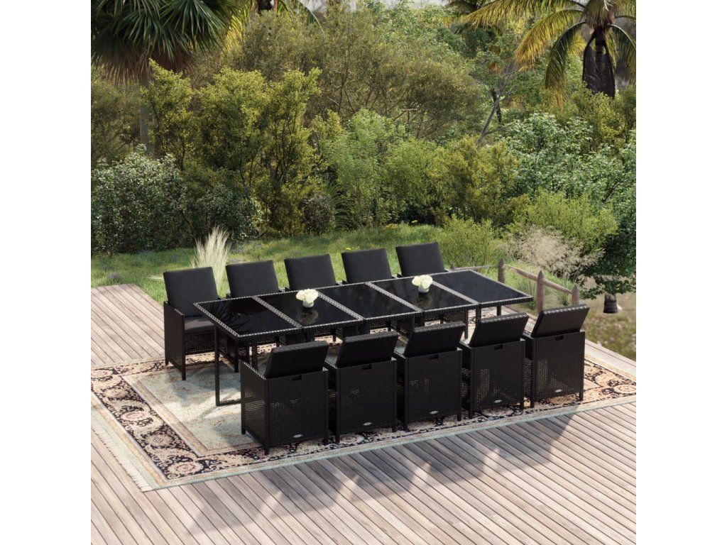 vidaXL 11-dielna záhradná jedálenská súprava vankúše polyratan čierna