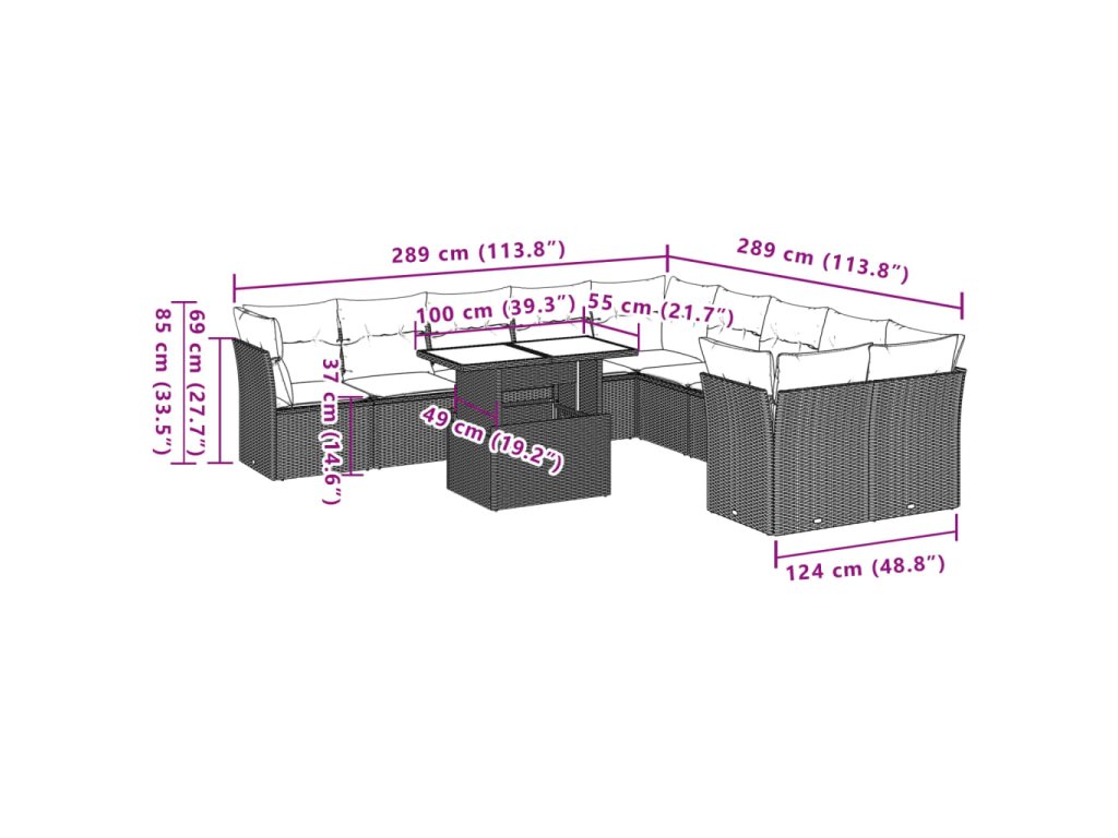 vidaXL 11-dielna záhradná sedacia súprava a vankúše hnedá polyratan