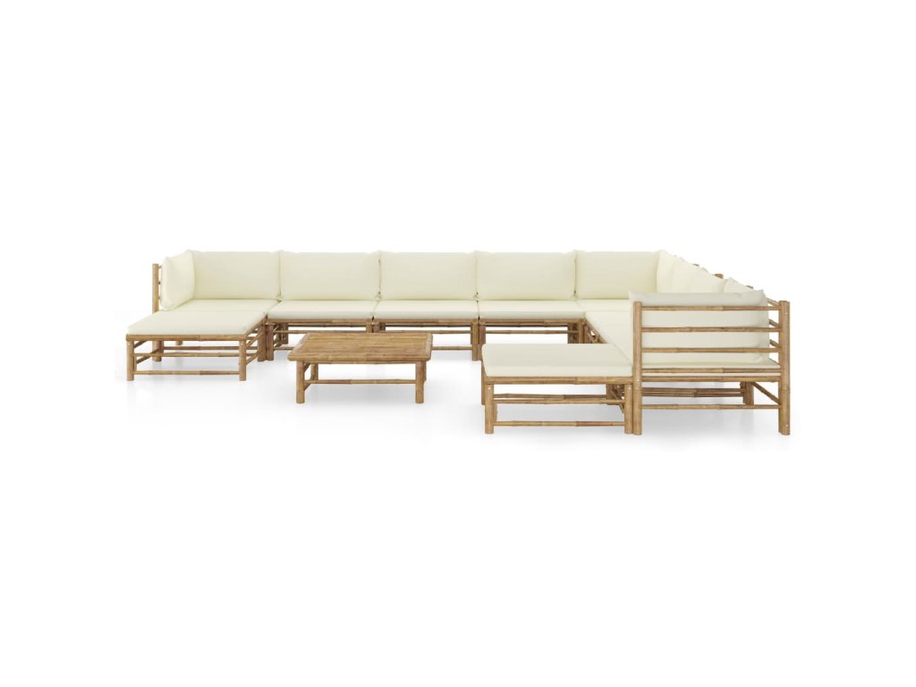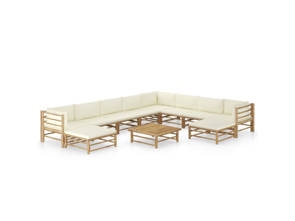 vidaXL 11-dielna záhradná sedacia súprava s krémovobielymi podložkami bambus