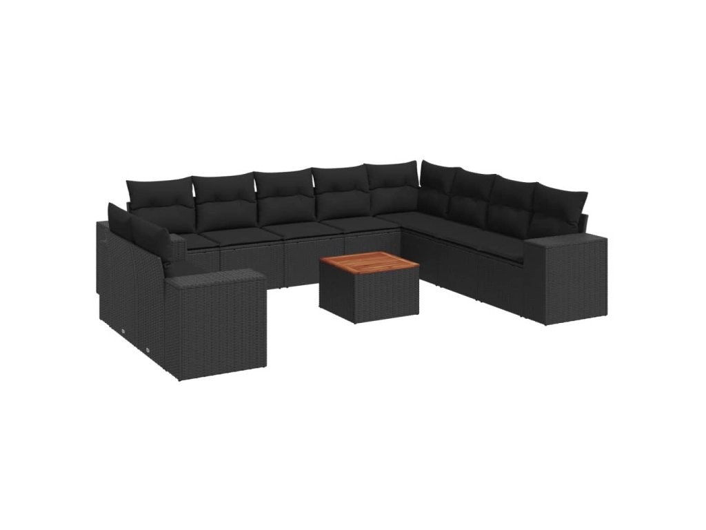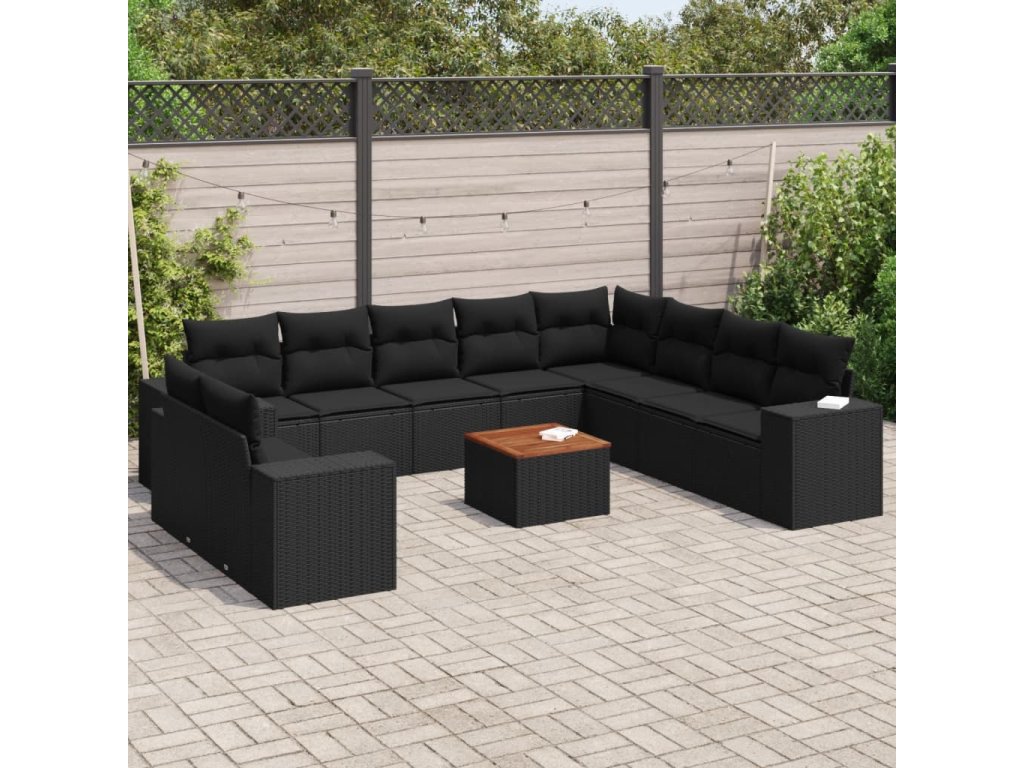vidaXL 11-dielna záhradná sedacia súprava vankúše polyratan čierna