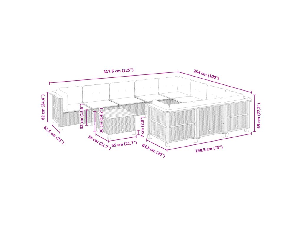 vidaXL 11-dielna záhradná sedacia súprava vankúše polyratan čierna