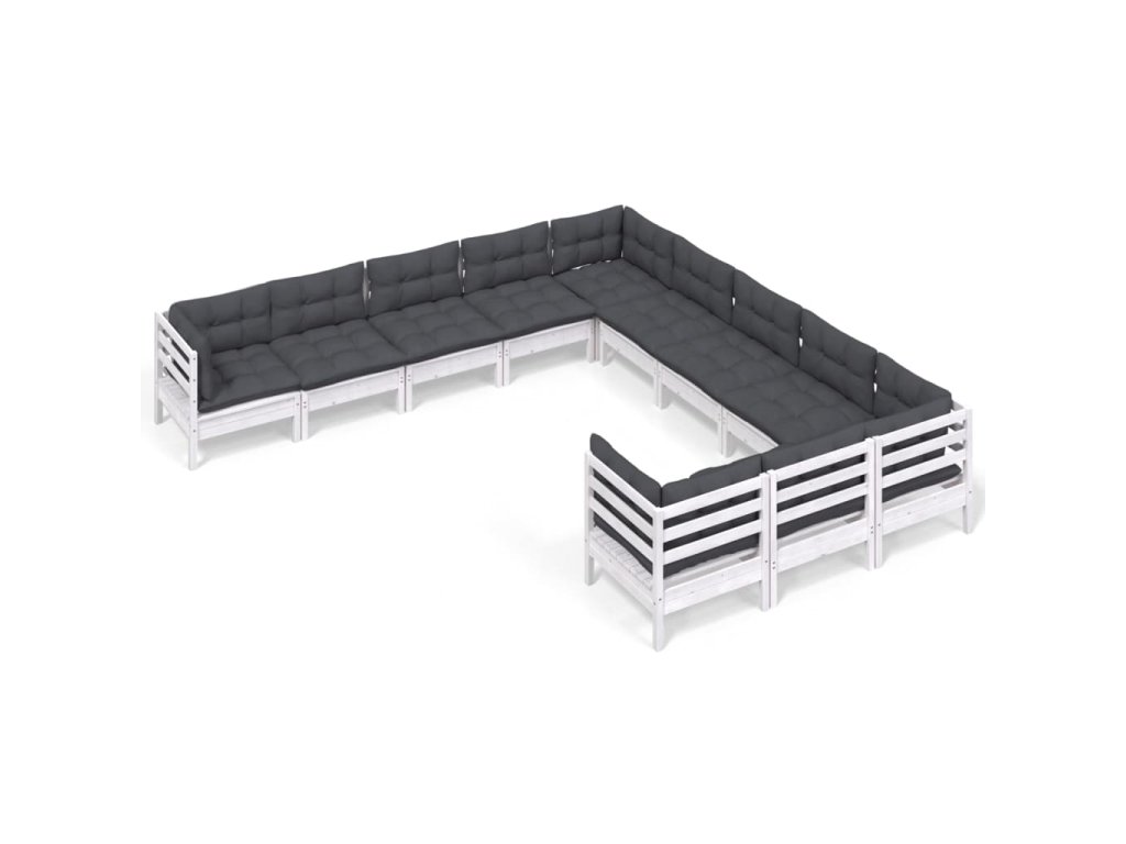 vidaXL 11-dielna záhradná súprava s vankúšmi biela borovica
