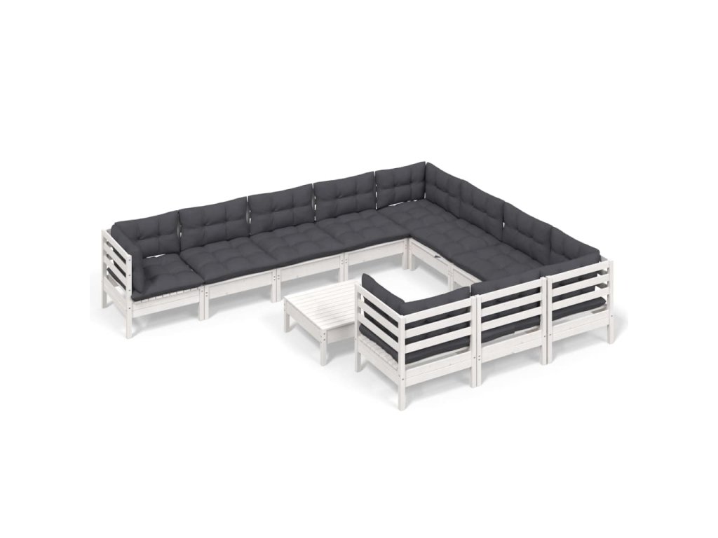 vidaXL 11-dielna záhradná súprava s vankúšmi biela borovica