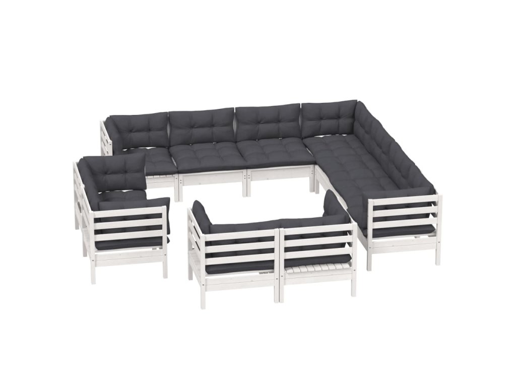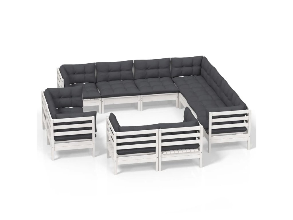 vidaXL 11-dielna záhradná súprava s vankúšmi biela borovicový masív