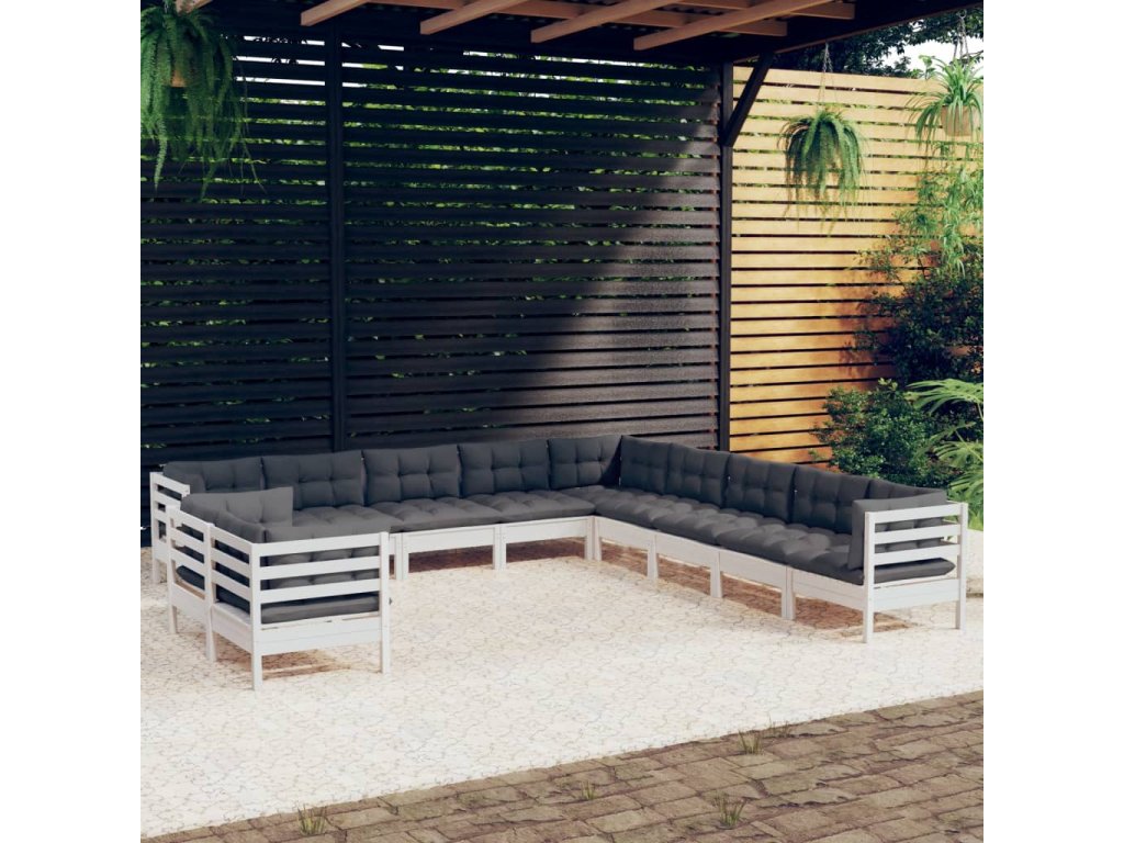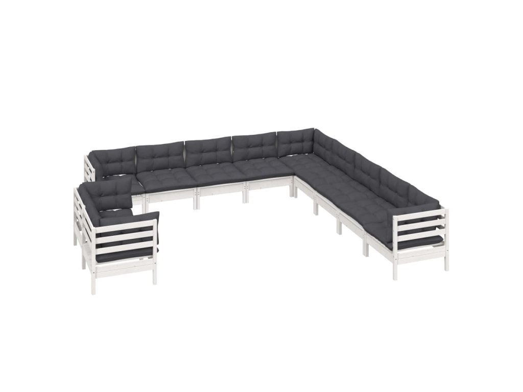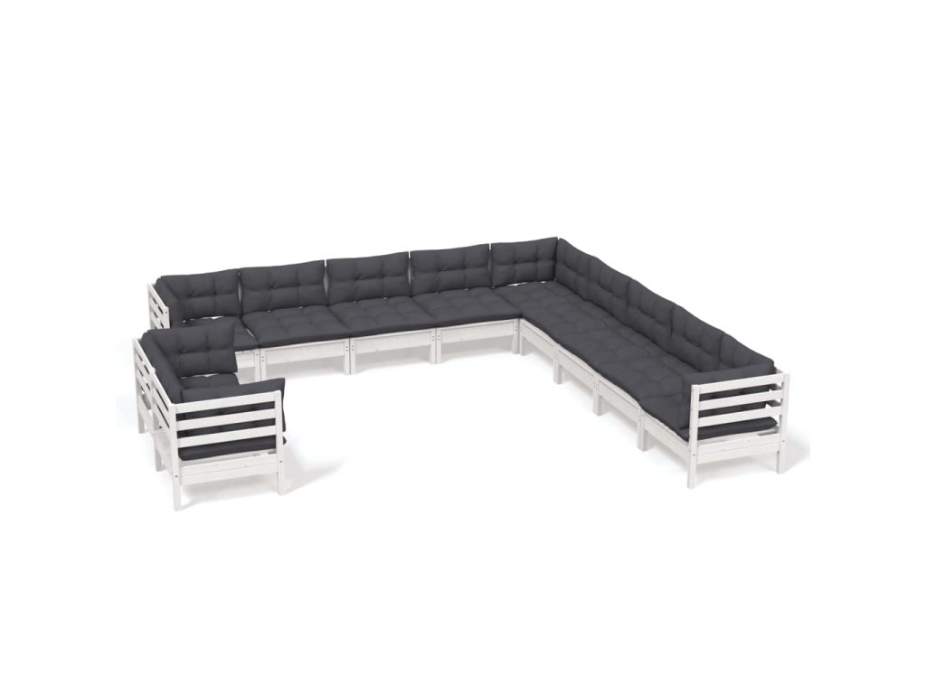vidaXL 11-dielna záhradná súprava s vankúšmi biela borovicový masív
