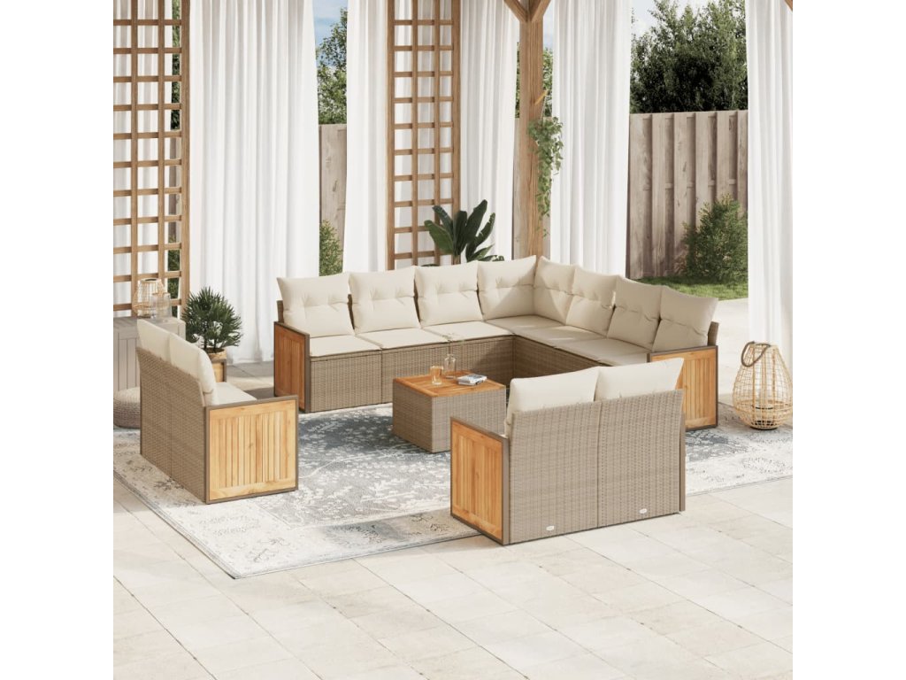 vidaXL 12-dielna záhradná sedacia súprava a vankúše béžová polyratan