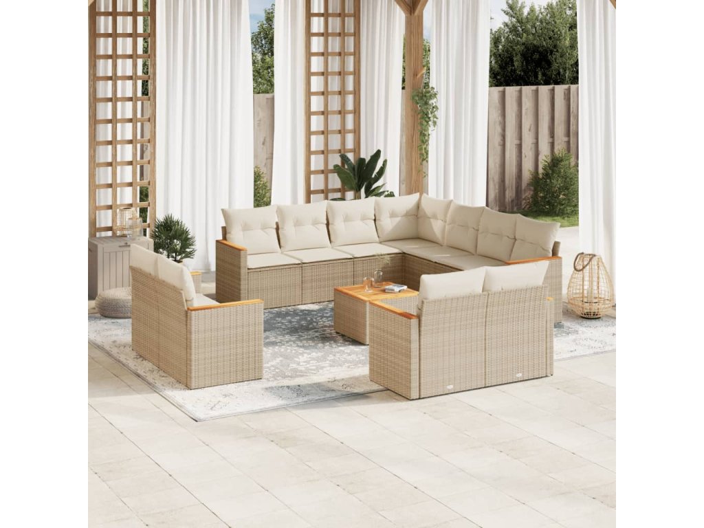 vidaXL 12-dielna záhradná sedacia súprava a vankúše béžová polyratan