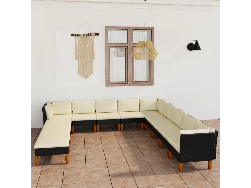 vidaXL 12-dielna záhradná sedacia súprava s podložkami polyratan čierna