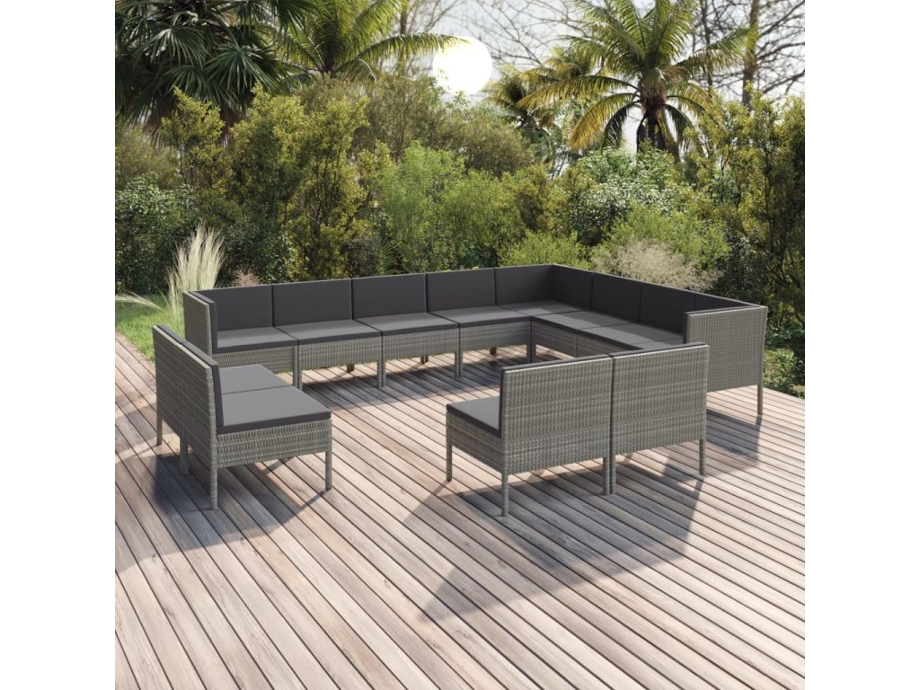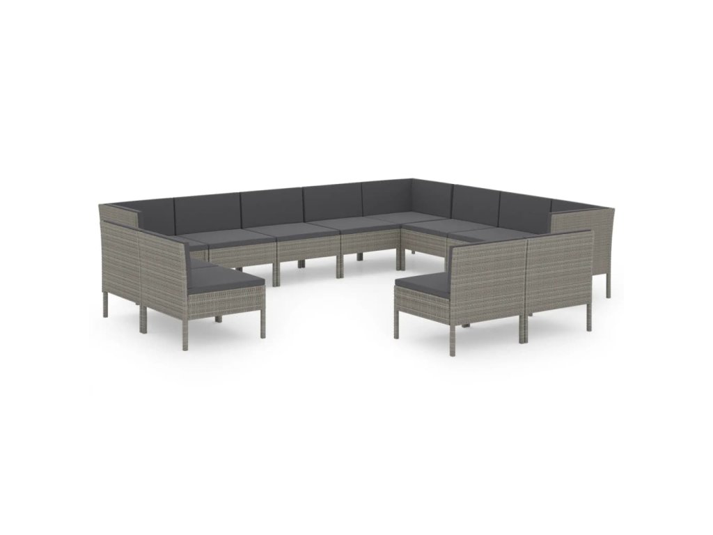 vidaXL 12-dielna záhradná sedacia súprava s podložkami polyratan sivá