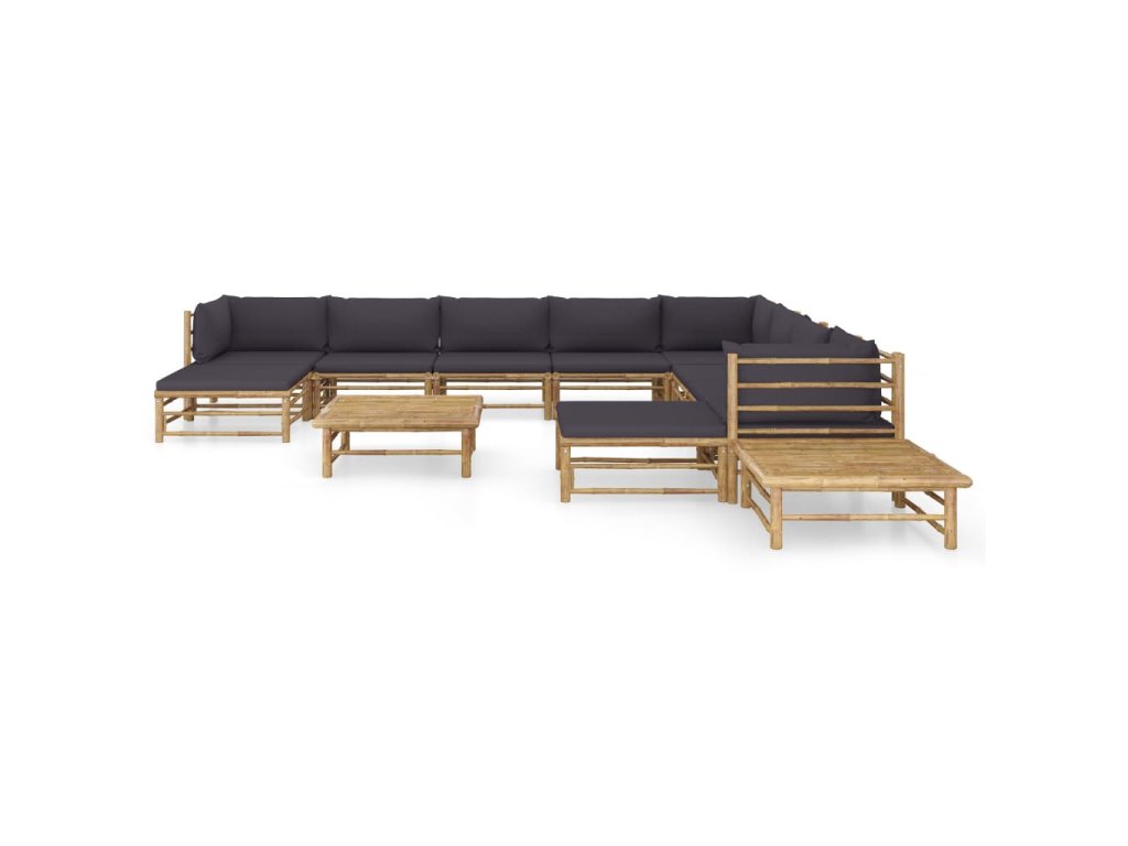 vidaXL 12-dielna záhradná sedacia súprava s tmavosivými podložkami bambus