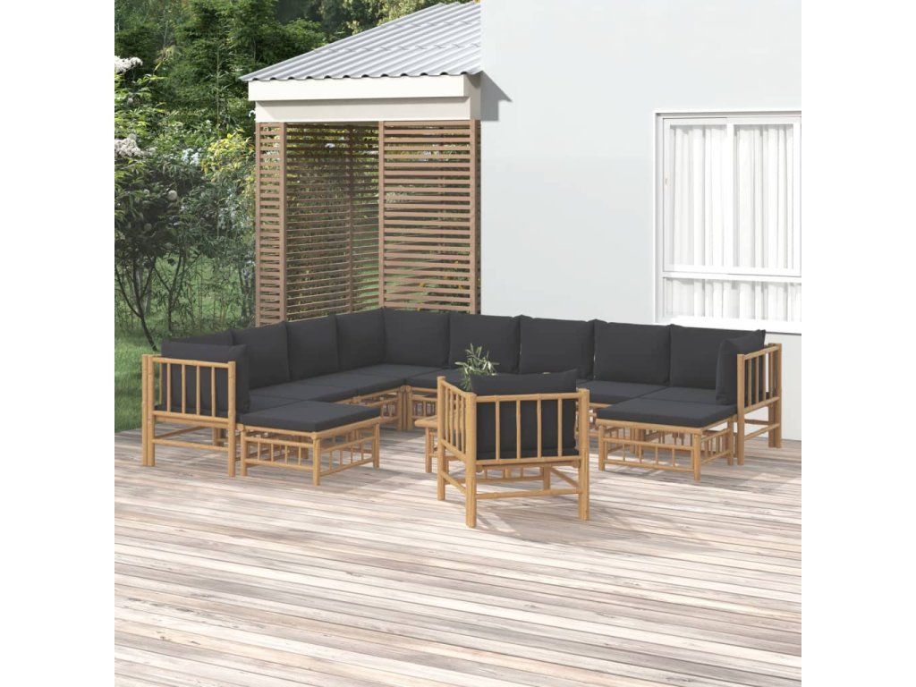 vidaXL 12-dielna záhradná sedacia súprava tmavosivé vankúše bambus