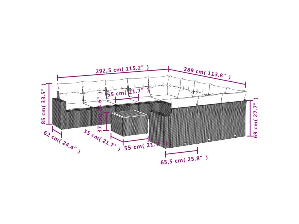 vidaXL 12-dielna záhradná súprava pohoviek s vankúšmi čierna polyratan