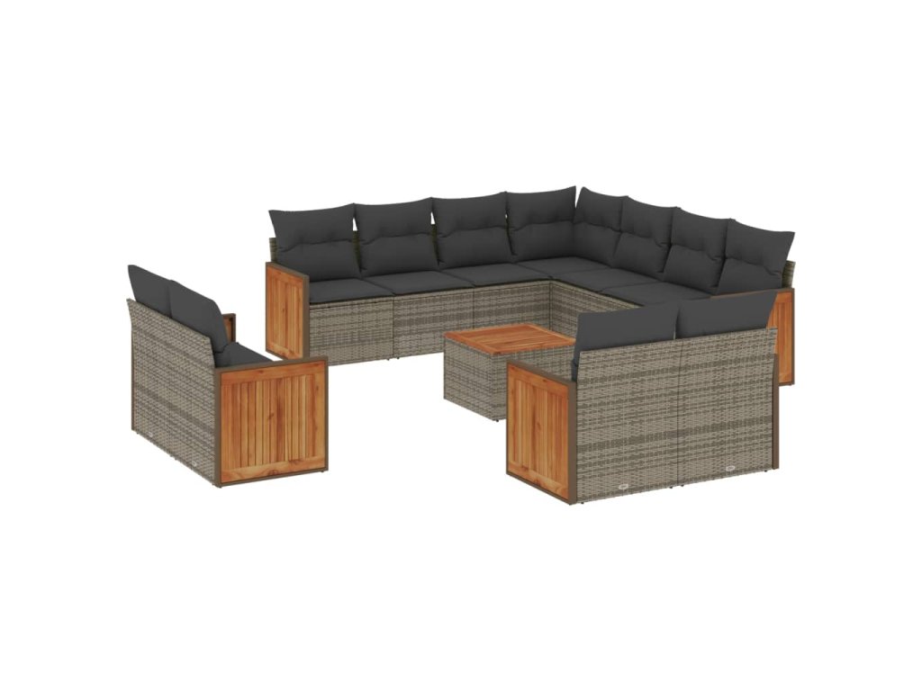 vidaXL 12-dielna záhradná súprava pohoviek s vankúšmi sivá polyratan