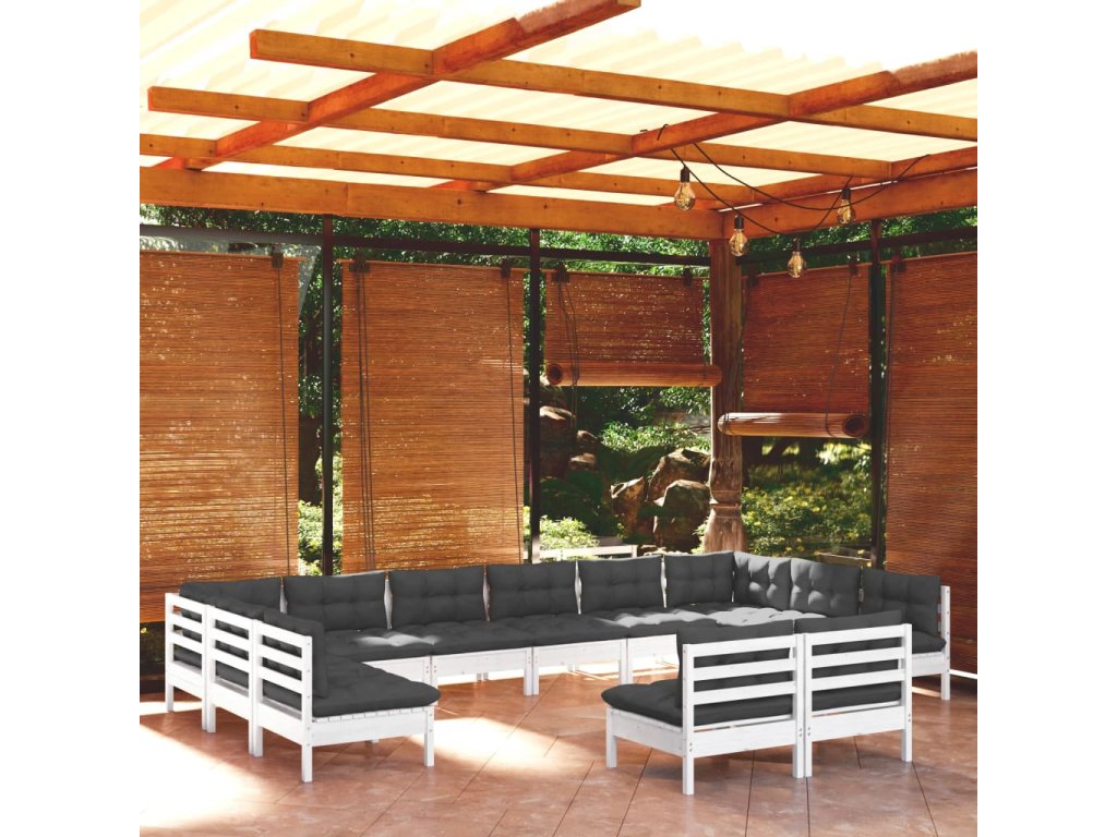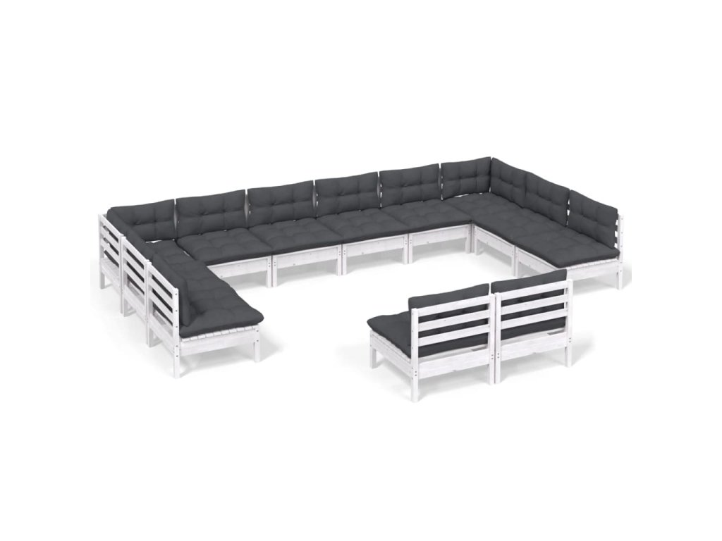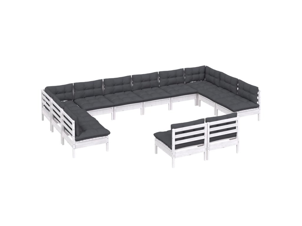 vidaXL 12-dielna záhradná súprava s vankúšmi biela borovicový masív