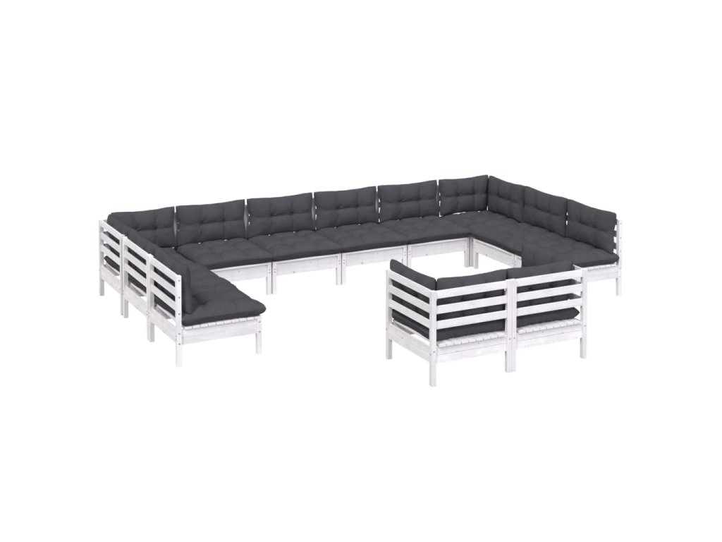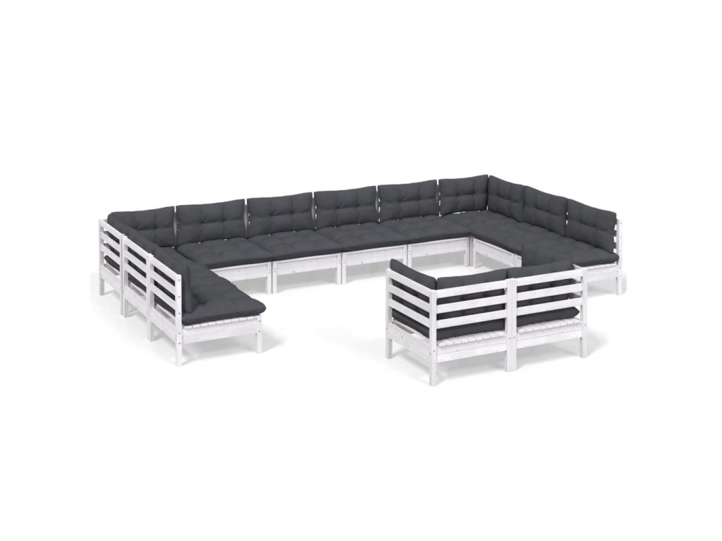 vidaXL 12-dielna záhradná súprava s vankúšmi biela borovicový masív