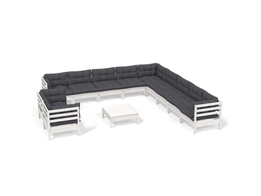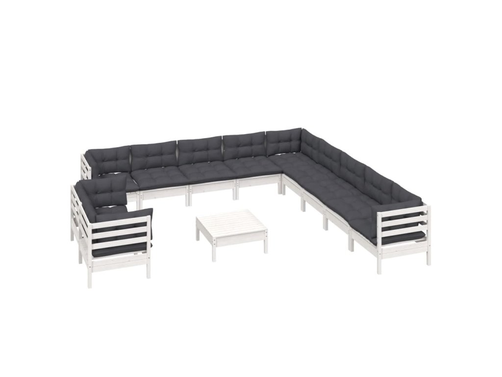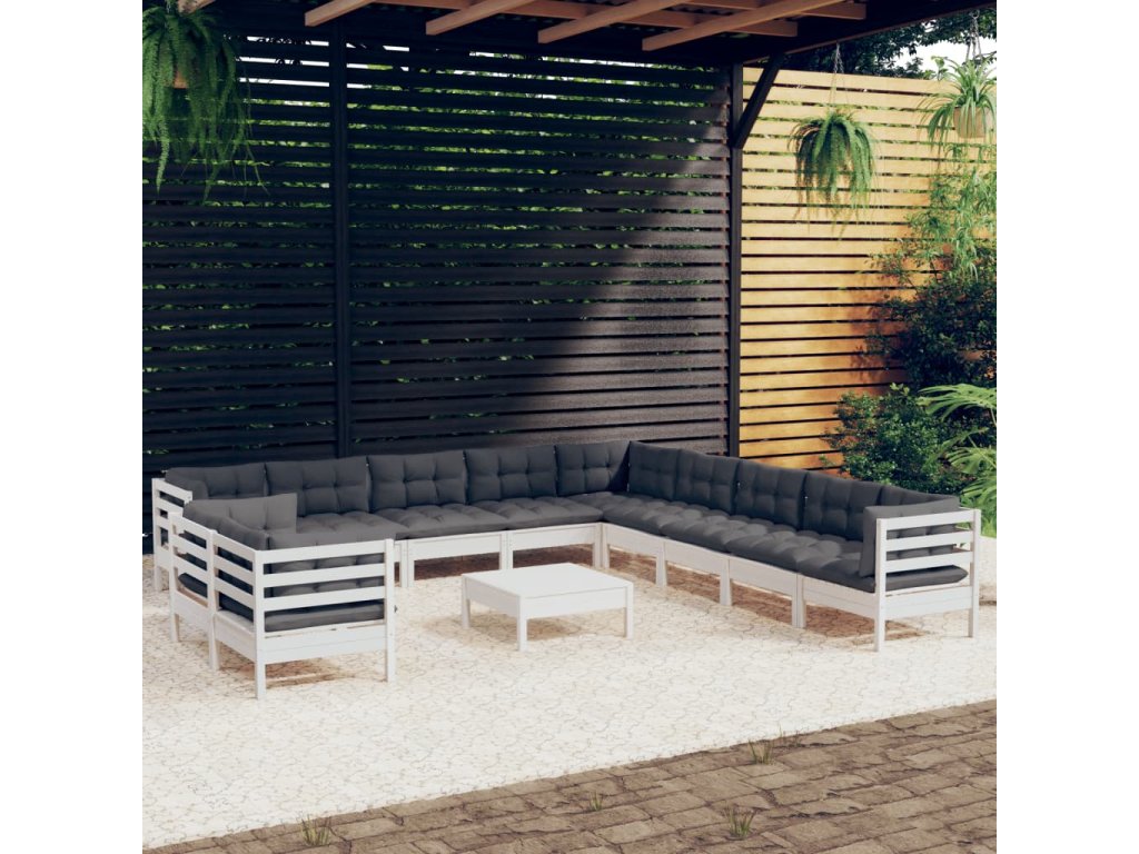 vidaXL 12-dielna záhradná súprava s vankúšmi biela borovicový masív