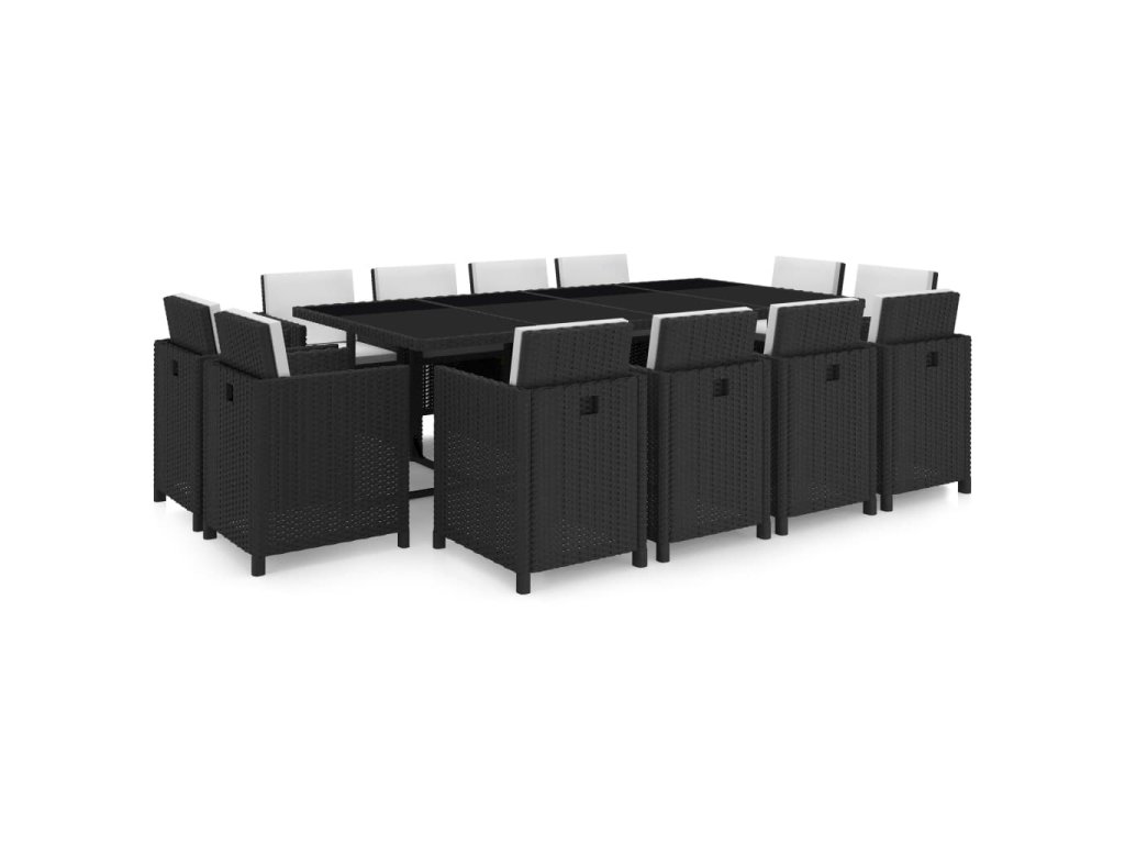 vidaXL 13-dielna vonkajšia jedálenská súprava s vankúšmi polyratan čierna