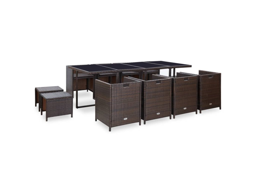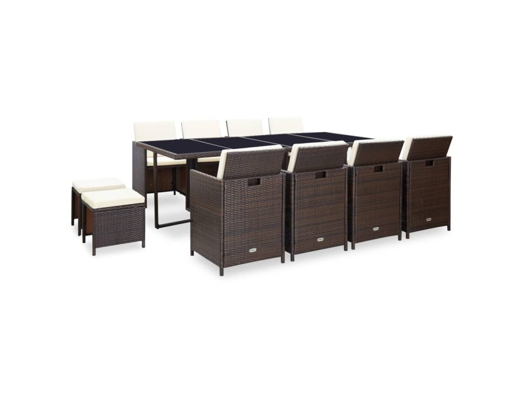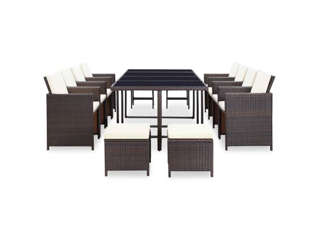 vidaXL 13-dielna vonkajšia jedálenská súprava s vankúšmi polyratan hnedá