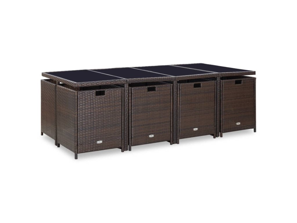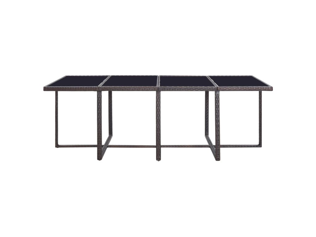 Táto ratanová jedálenská sada s elegantným dizajnom bude skvelou voľbou pre večere na čerstvom vzduchu či relaxovanie na záhrade. Majú oceľové rámy s práškovým náterom a tak sú stôl, stoličky a taburetky pevné a robustné. Vďaka ich ľahkej konštrukcii je možné všetky časti súpravy jednoducho presúvať. Polyratan je vodeodolný a odolný voči vplyvom počasia a jedálenská sada sa tak ľahko čistí. Sklenený vrch stola sa taktiež jednoducho čistí pomocou navlhčenej handričky.