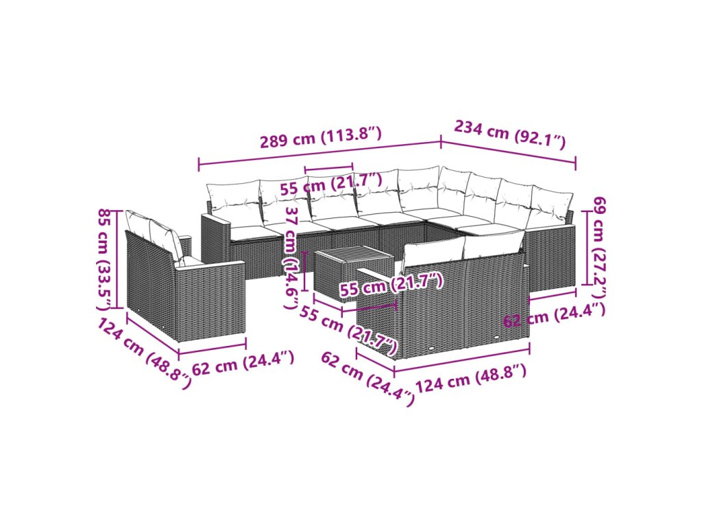 vidaXL 13-dielna záhr. jedálenská súprava s vankúšmi čierna polyratan