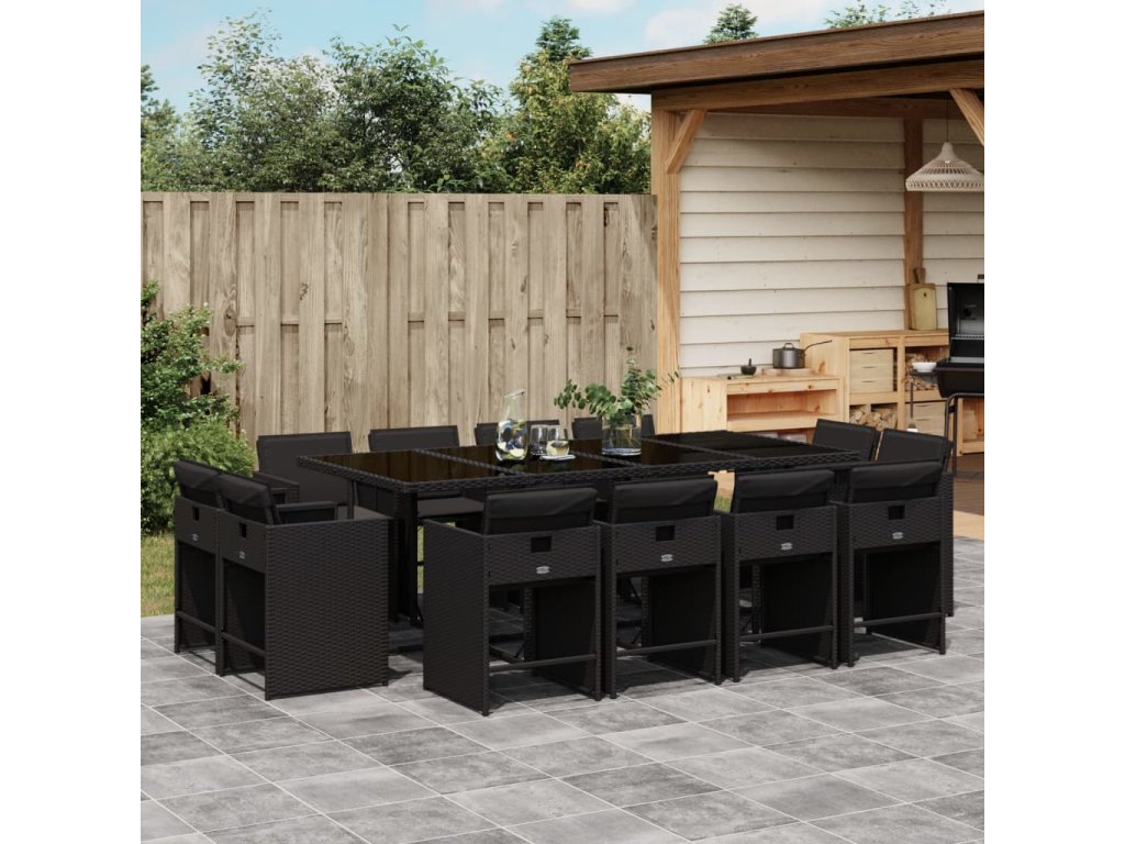 vidaXL 13-dielna záhr. jedálenská súprava s vankúšmi čierna polyratan