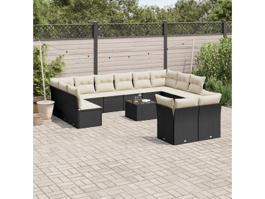 vidaXL 13-dielna záhr. jedálenská súprava s vankúšmi čierna polyratan