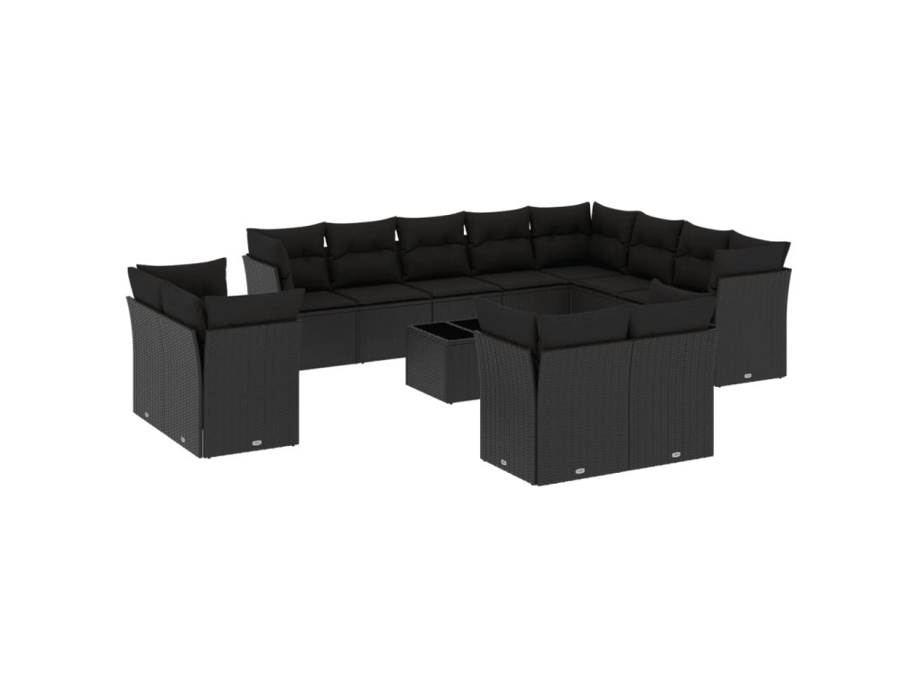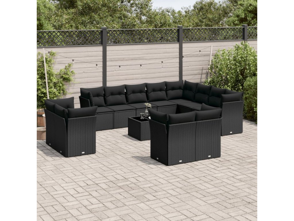 vidaXL 13-dielna záhr. jedálenská súprava s vankúšmi čierna polyratan