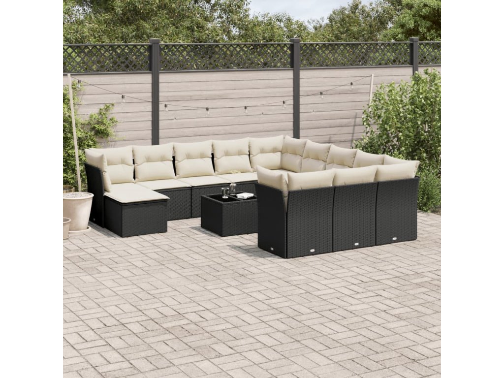 vidaXL 13-dielna záhr. jedálenská súprava s vankúšmi čierna polyratan