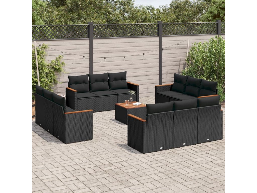 vidaXL 13-dielna záhr. jedálenská súprava s vankúšmi čierna polyratan