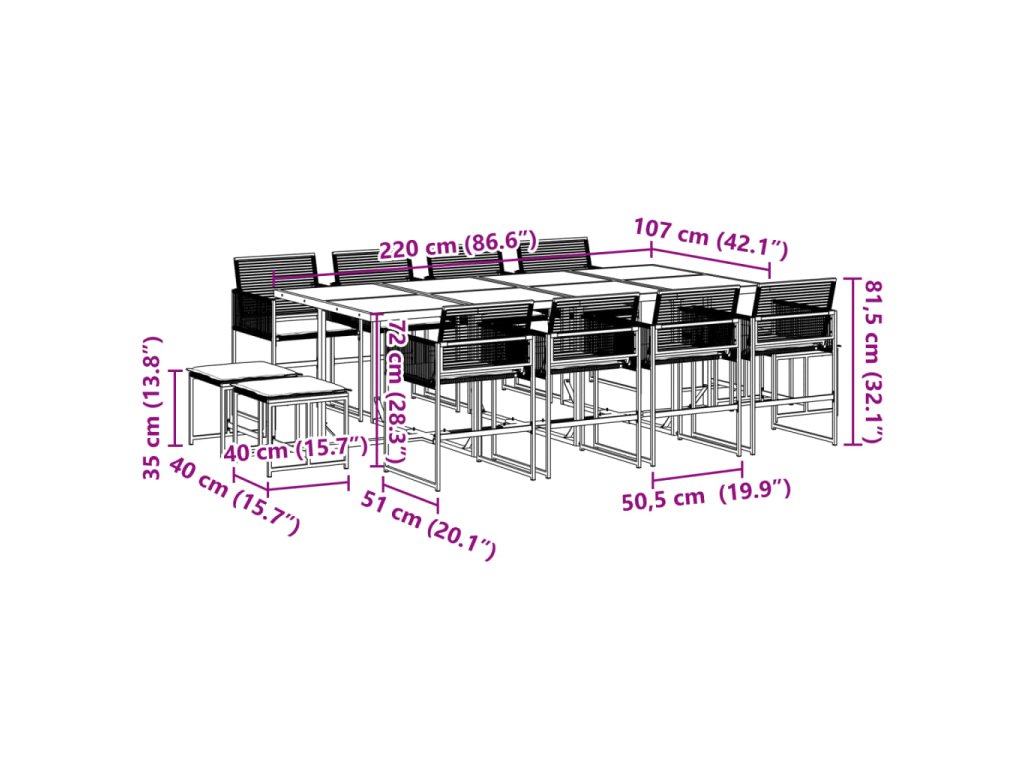 vidaXL 13-dielna záhr. jedálenská súprava s vankúšmi čierna polyratan